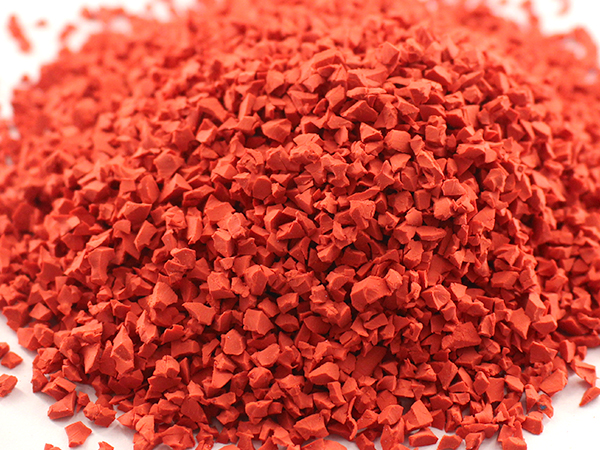 EPDM颗粒主要是由三元乙丙橡胶,橡胶软化油,碳酸钙以及色粉等组成。我司生产的EPDM颗粒主要原料三元乙丙轻质橡胶,全部采用进口,质量有保证。其主要特点是:含胶量足,比重轻;抗老化,耐腐蚀,耐色变;弹性好,粘接性强;耐磨防滑,色彩鲜艳,维护方便,全天使用。