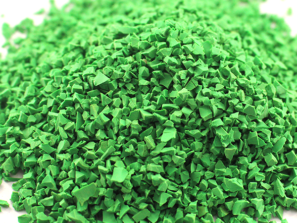 EPDM颗粒主要是由三元乙丙橡胶,橡胶软化油,碳酸钙以及色粉等组成。我司生产的EPDM颗粒主要原料三元乙丙轻质橡胶,全部采用进口,质量有保证。其主要特点是:含胶量足,比重轻;抗老化,耐腐蚀,耐色变;弹性好,粘接性强;耐磨防滑,色彩鲜艳,维护方便,全天使用。