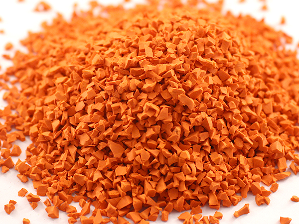 EPDM颗粒主要是由三元乙丙橡胶,橡胶软化油,碳酸钙以及色粉等组成。我司生产的EPDM颗粒主要原料三元乙丙轻质橡胶,全部采用进口,质量有保证。其主要特点是:含胶量足,比重轻;抗老化,耐腐蚀,耐色变;弹性好,粘接性强;耐磨防滑,色彩鲜艳,维护方便,全天使用。